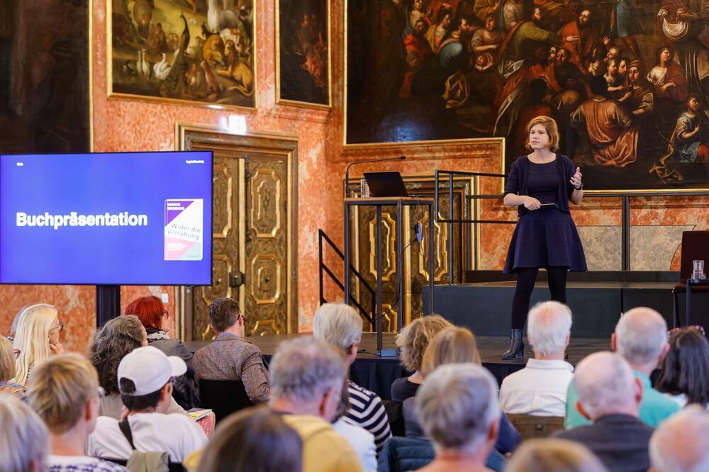 Dynamisch-humorvoll setzte die Top-Journalistin und Bestsellerautorin INGRID BRODNIG genau hier an und erläuterte, wie die Verrohung bewusst herbeigeführt wird: durch „Bullshit“-Debatten, populistische Diskussionsmuster, Diffamierung und Hetze gegen öffentliche Personen und rechtsextreme Kampagnen, angetrieben von Mechanismen sozialer Medien. „Gefährliche, kuriose und aufgeblasene Falschmeldungen zielen darauf ab, Gespräche und Konsens verhindern.“