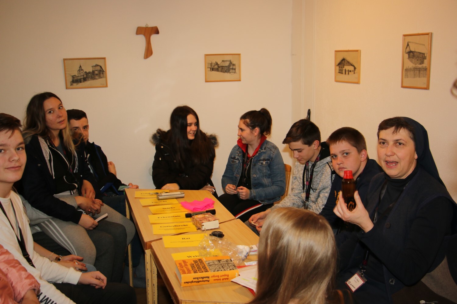Sr. Maria erklärt den Jugendlichen das Sakrament der Firmung