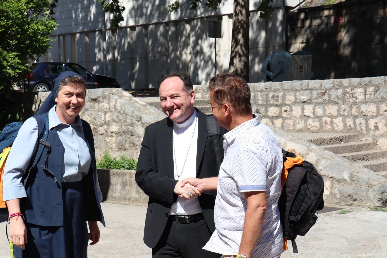 Sr. Maria und Wolfgang Garber begrüßen unseren ehemaligen Provisor Bischof Petar PaliPalić