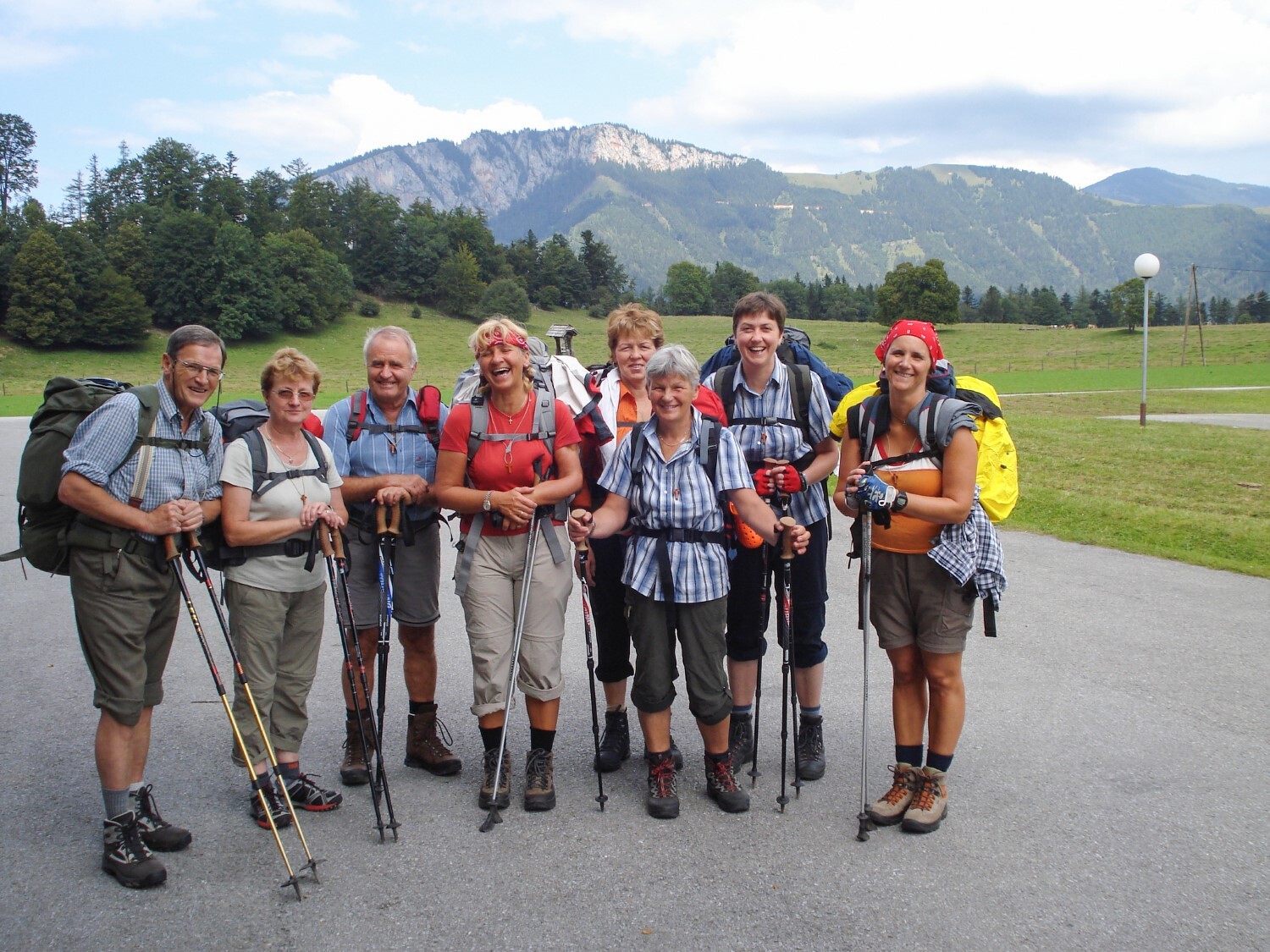 In Mariazell angekommen: Gruppenfoto bei der Ortstafel