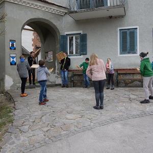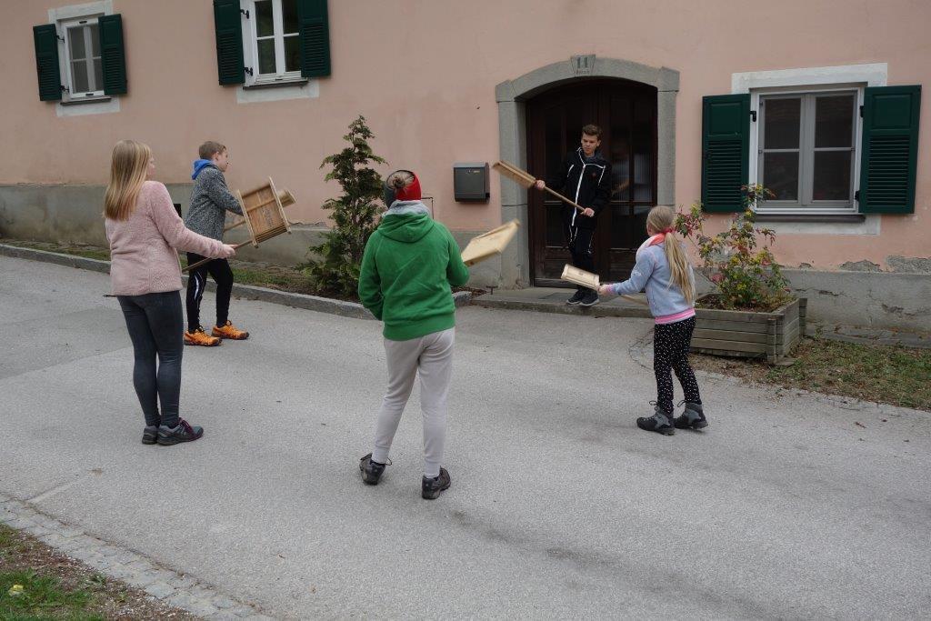Das Ratschen ist ein schöner Brauch, der in der Karwoche in Adriach schon lange Tradition hat und sehr gepflegt wird. Dabei zogen heute 9 Mädchen und Buben, alles Ministrantinnen und Ministranten, durch den Ortsteil Adriach von Haus zu Haus, um die Gläubigen mit einem Spruch, begleitet von heftigem Lärm, an die Gebetszeiten und Gottesdienste zu erinnern.