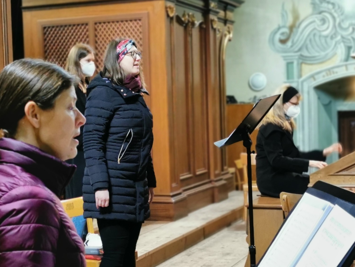 Unsere Sängerinnen Eva Heißmann-Zabini, Lena Zabini und Verena Waidacher sangen das zuversichtliche Terzett „Hebe deine Augen auf“ aus dem Oratorium „Elias“ von Felix Mendelssohn-Bartholdy. Außerdem waren das Duett „O dulcis Jesu“ von Chiara Maria Cozzolani und der letzte Satz aus dem berühmten „Stabat mater“ von Giovanni Battisata Pergolesi zu hören, von der Chorleiterin Miriam Ahrer an der Orgel begleitet.