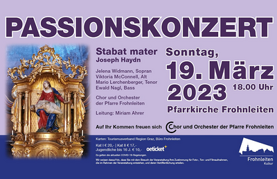 Der Chor und das Orchester der Pfarre Frohnleiten laden am Sonntag, 19. März zu einer klassischen Konzertstunde ein: Zur Aufführung kommt das „Stabat mater“ von Joseph Haydn. Das Werk entstand 1767...