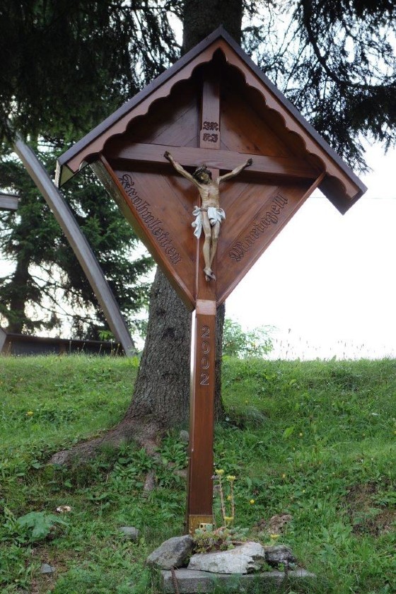 Anlässlich des 20-jährigen Jubiläums der Fußwallfahrt von Frohnleiten nach Mariazell hatte der eifrige Fußwallfahrer Karl Gratzer vom Brunnhof ein Kreuz auf der Schanz auf 1.171 m Seehöhe in den Fischbacher Alpen errichtet. Dieses schöne Zeichen des Glaubens wurde am Sonntag, 14. Juli 2002, von Pfarrer Pater Simon Orec feierlich eingeweiht. Rund 70 Gläubige aus Frohnleiten waren mit dem Bus zu dieser schlichten Feierstunde gekommen. Auch das Wetter spielte mit: zunächst sah es nach Gewitter aus, dann blieb es aber schön, sodass auch ein Zusammensitzen nach der stimmungsvollen Feier auf der Terrasse des gemütlichen Alpengasthofes möglich war.