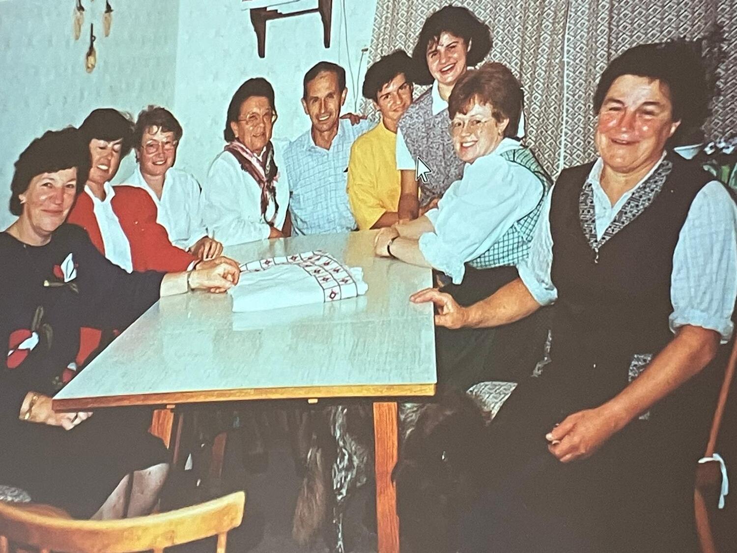 Es wurde sehr lebendig über Trachtenmode, Theater und die damaligen Bräuche gesprochen. Auch Erinnerungen aus dem Pfarrleben mit Pfarrer Pichler und dem damaligen Kaplan Loibener Edi wurden aufgefrischt. Viele der Anwesenden wussten kleine Anektoden zu erzählen über die damaligen Zeiten und schöne Erlebnisse zu berichten. Auch Geschichten über die Fotographen wurden freudvoll erzählt. Robert Glück und Christa Schreiner wurden dabei wiedererkannt.