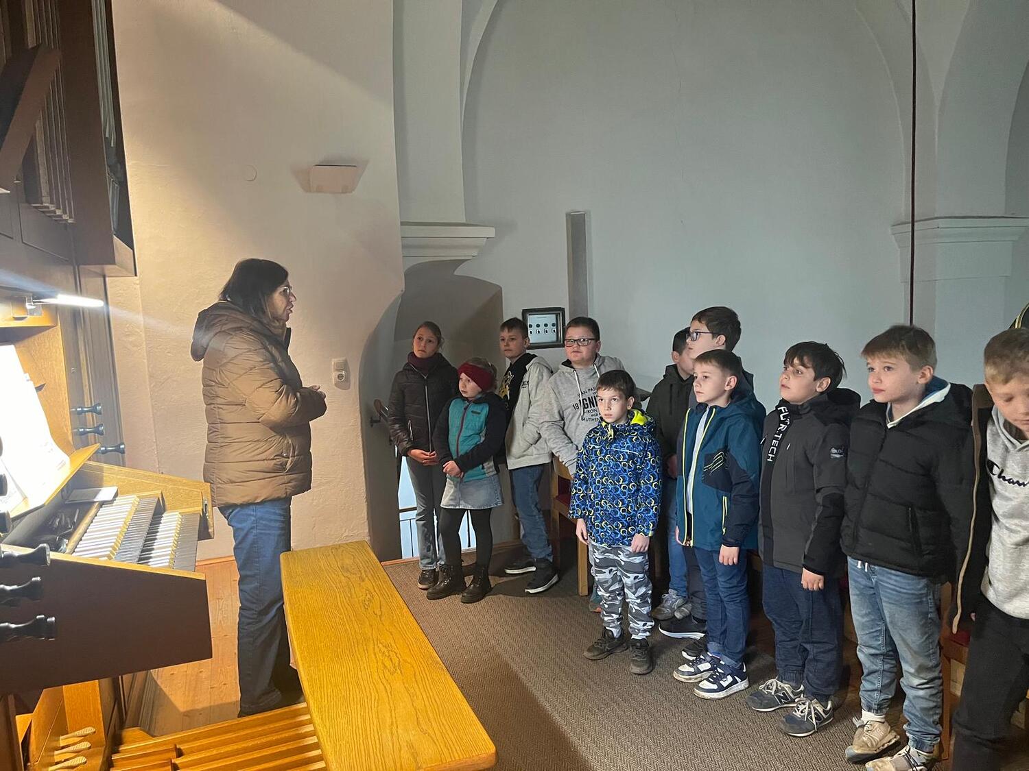 Die Volksschulkinder entdecken die Orgel in der Kirche