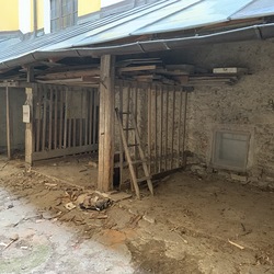 Räumen und Abtragen der Holzhütte im südlichen Innenhof