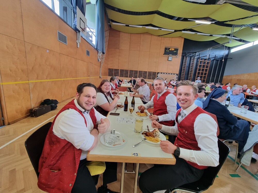 Nach der wunderschön gestalteten Erstkommunion zogen die Erstkommunionkinder in die Halle um beim Start des Pfarrfests dabei zu sein. Nachdem wir letztes Jahr richtiges Wetterglück hatten, mussten wir diesmal in die Veranstaltungshalle ausweichen. Dem Wetter zum Trotz war die Stimmung sehr gut. Das Kinderprogramm war gut besucht, viele Preise wurden verlost und natürlich gab es wieder genug zu essen und zu trinken. Obwohl diesmal besonders viele Torten gebacken wurden, waren am Schluss alle weg.