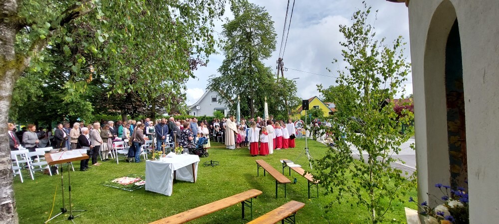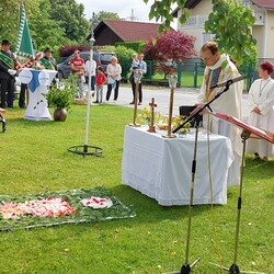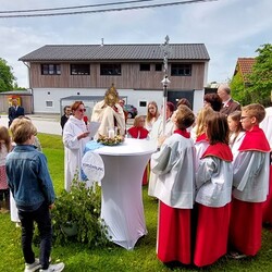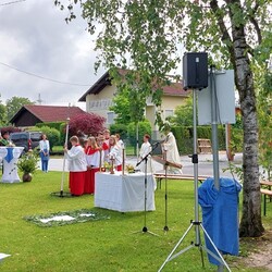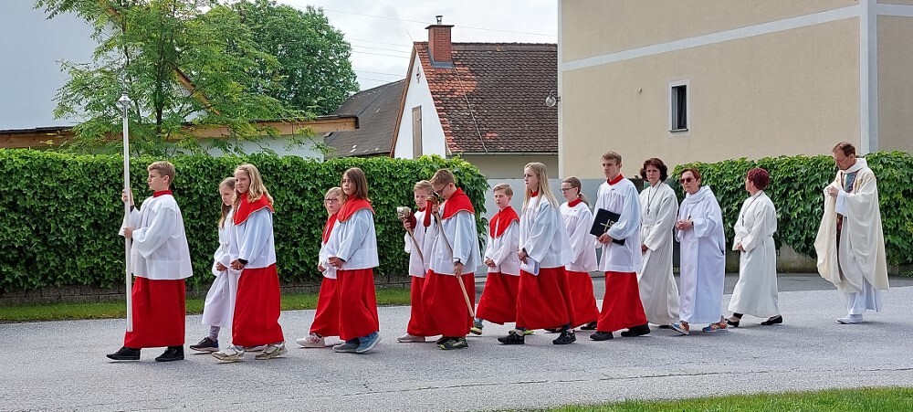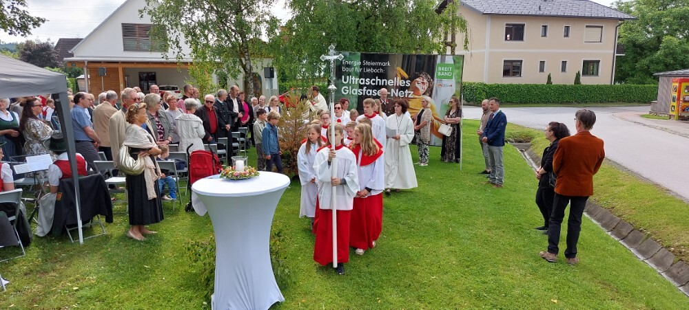Gemeinsam mit der Pfarre Tobelbad feierten wir das Fronleichnamsfest beim Dorfkreuz in Lieboch. Der auferstandene Herr Jesus, der in der Gestalt des Brotes gegenwärtig ist, steht im Mittelpunkt.