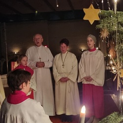 Tina Fegerl hat mit den Kindern in vielen Proben wieder ein tolles Krippenspiel einstudiert und eine besinnliche Andacht vorbereitet. Musikalisch begleitet wurde es von eine Bläsergruppe von klein bis groß.