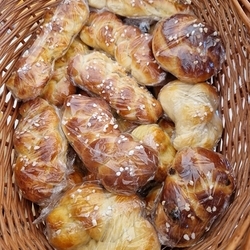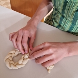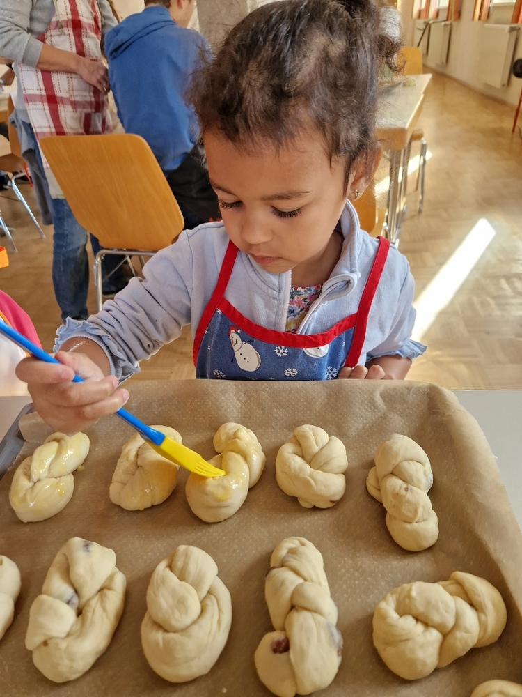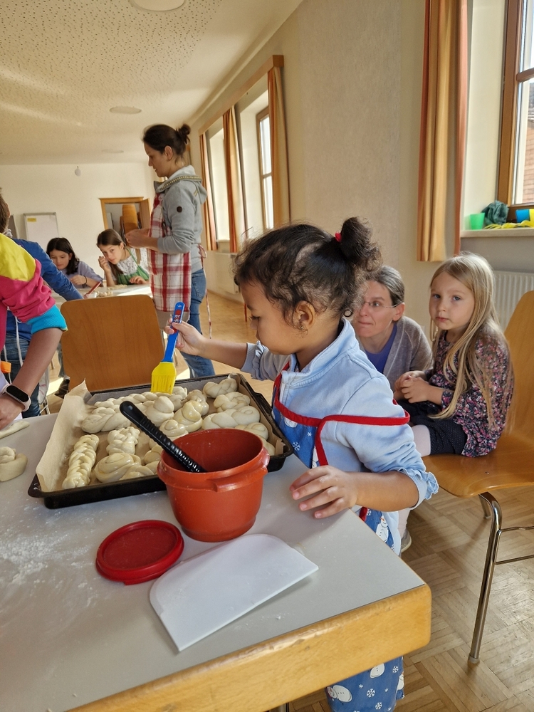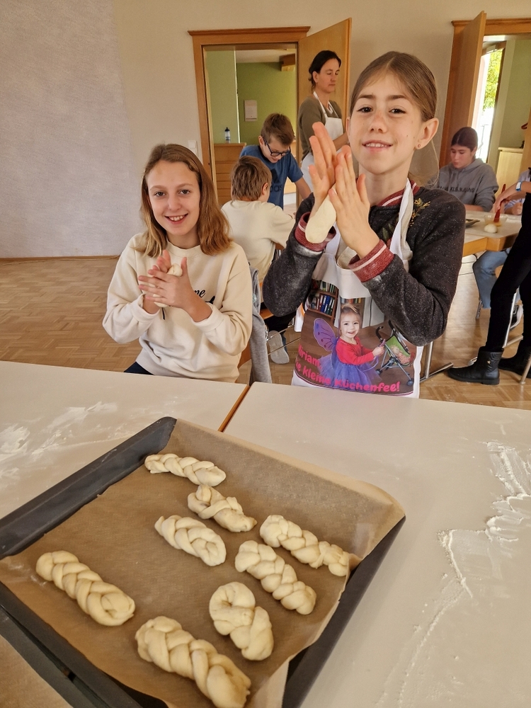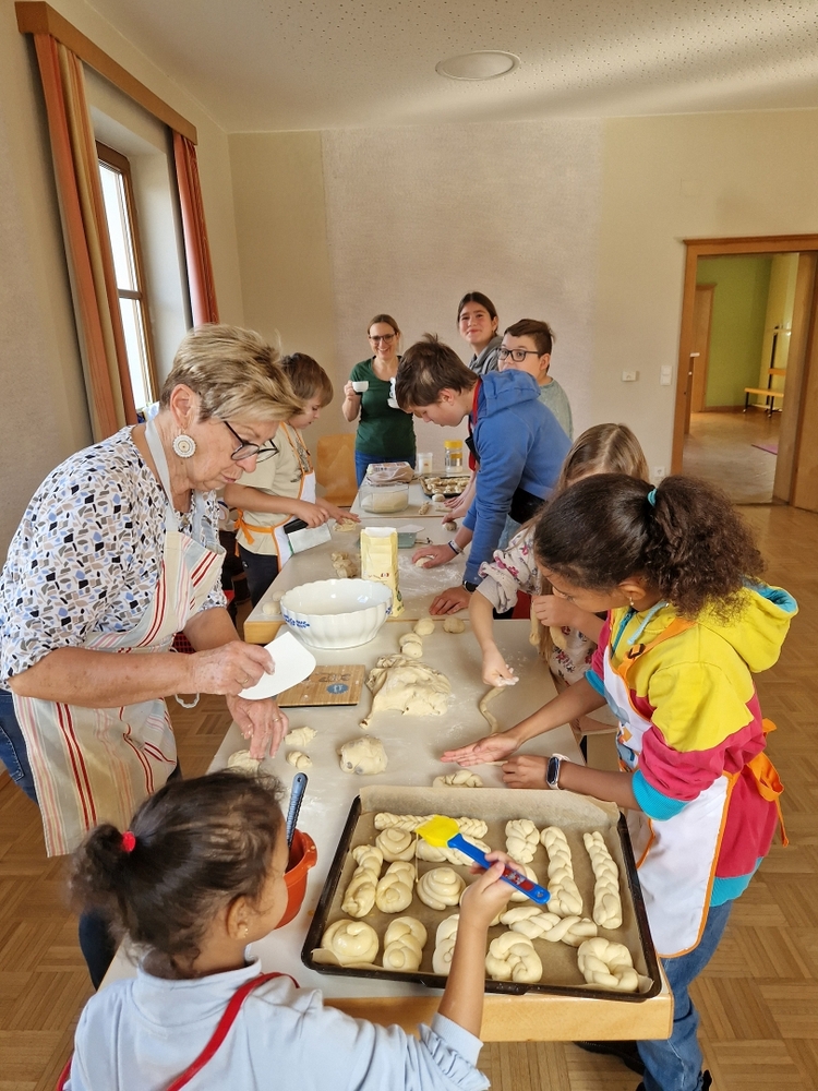 Am 31. Oktober fanden sich auch heuer wieder viele große und kleine Bäckerinnen und Bäcker im Pfarrheim ein, um aus 12 kg Germteig herrliche Allerheiligenstriezerl zu formen. Sieben Erwachsene sowie alle Minis und eventuell zukünftige Minis (insgesamt 16 Kinder) waren von 9 -11 Uhr mit Feuereifer dabei.