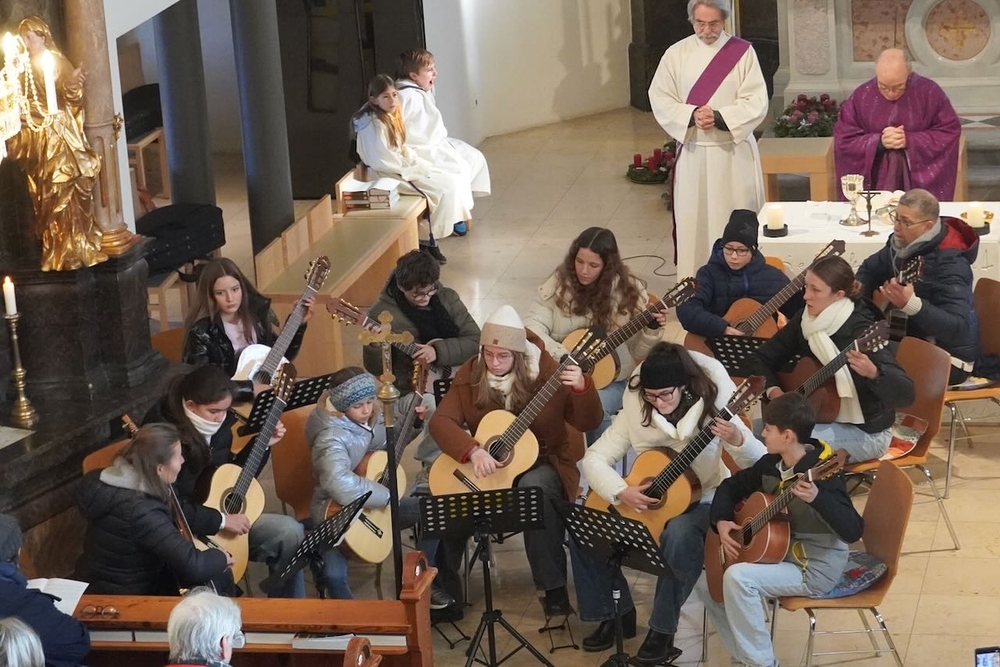 Mit viel Gefühl stimmten die jungen Musikerinnen und Musiker mit ihren Gitarren in die Adventzeit ein und bereicherten mit ihren Stücken die heilige Messe, die Vikar Norbert Glaser, unterstützt von Diakon Michi Zepf, zelebrierte.